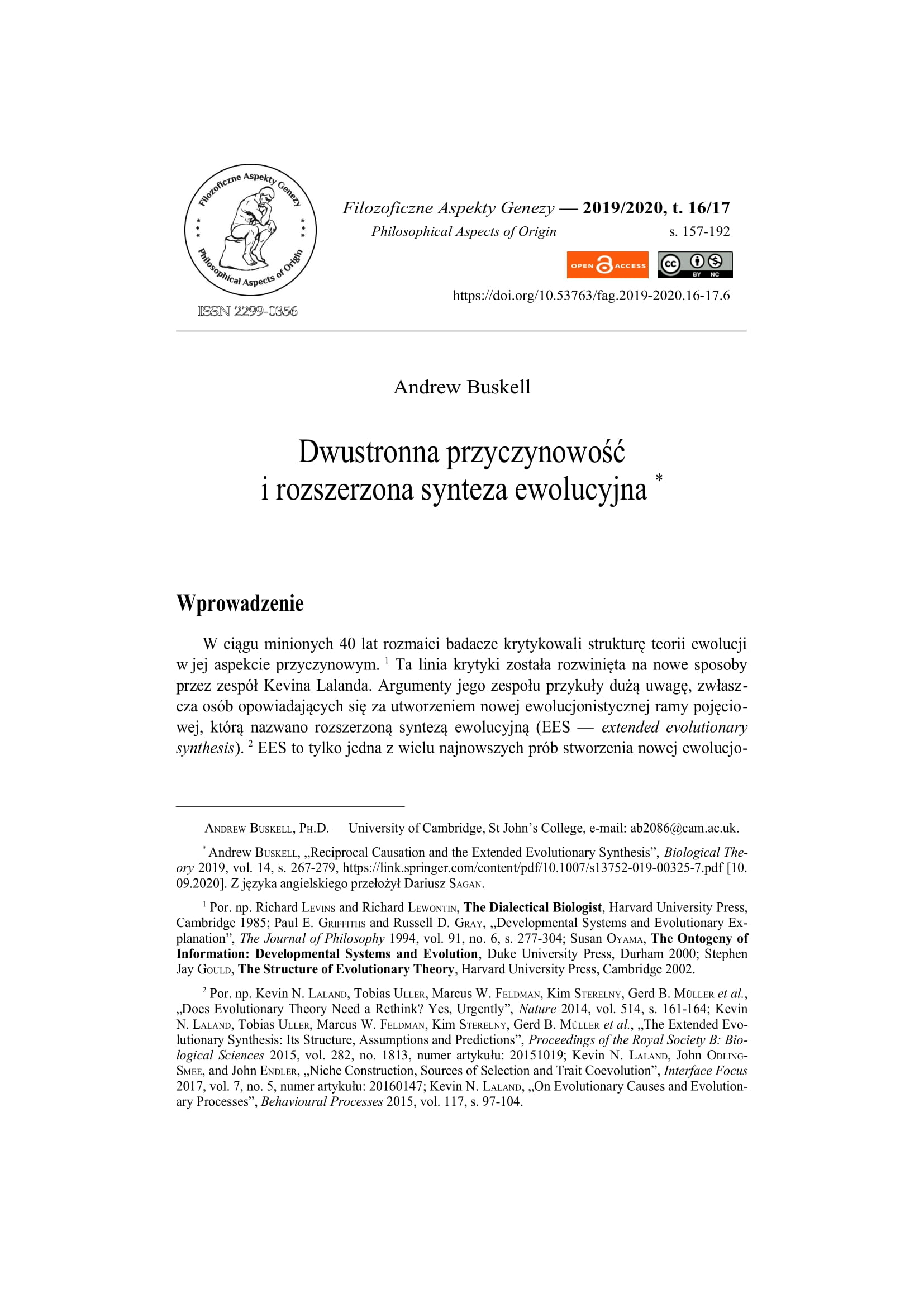 - Müller Gerd B., Dlaczego rozszerzona synteza ewolucyjna jest niezbędna, przeł. Dariusz Sagan, Filozoficzne Aspekty Genezy 2018, t. 15, s. 371-413, http://www.nauka-a-religia.uz.zgora.pl/images/FAG/2018.t.15/art.08.pdf [14.09.2021].